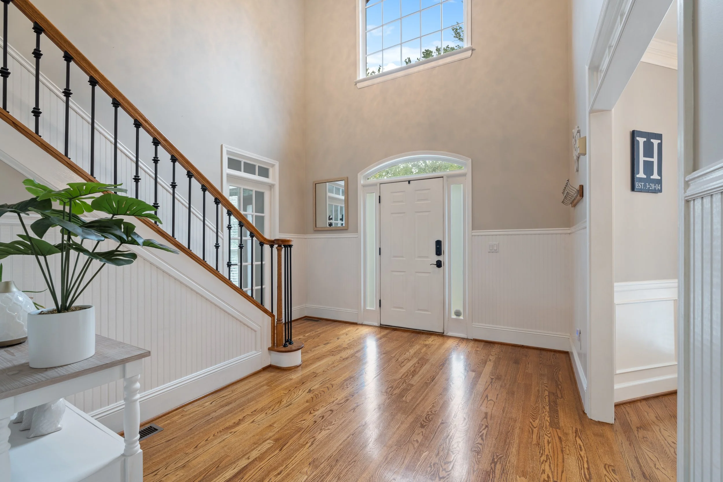 Step inside to a bright two-story foyer with beautiful hardwood floors that lead to an open, flexible main level. You’ll find a formal dining room, a private home office, and a guest suite with a full bath perfect for visitors or multigenerational living. The eat-in kitchen is the heart of the home, featuring ample counter space and a seamless flow into the living room and spacious deck, overlooking a flat, fenced backyard ideal for entertaining, kids, or pets.