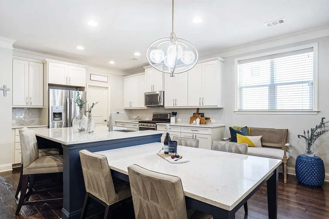 Inside, you’ll find a bright and versatile flex room at the front of the home perfect for a home office, study, or formal dining space. The open-concept kitchen is the heart of the home, showcasing an oversized island, crisp white cabinetry, and seamless flow into the spacious family room ideal for entertaining or relaxing after a busy day.